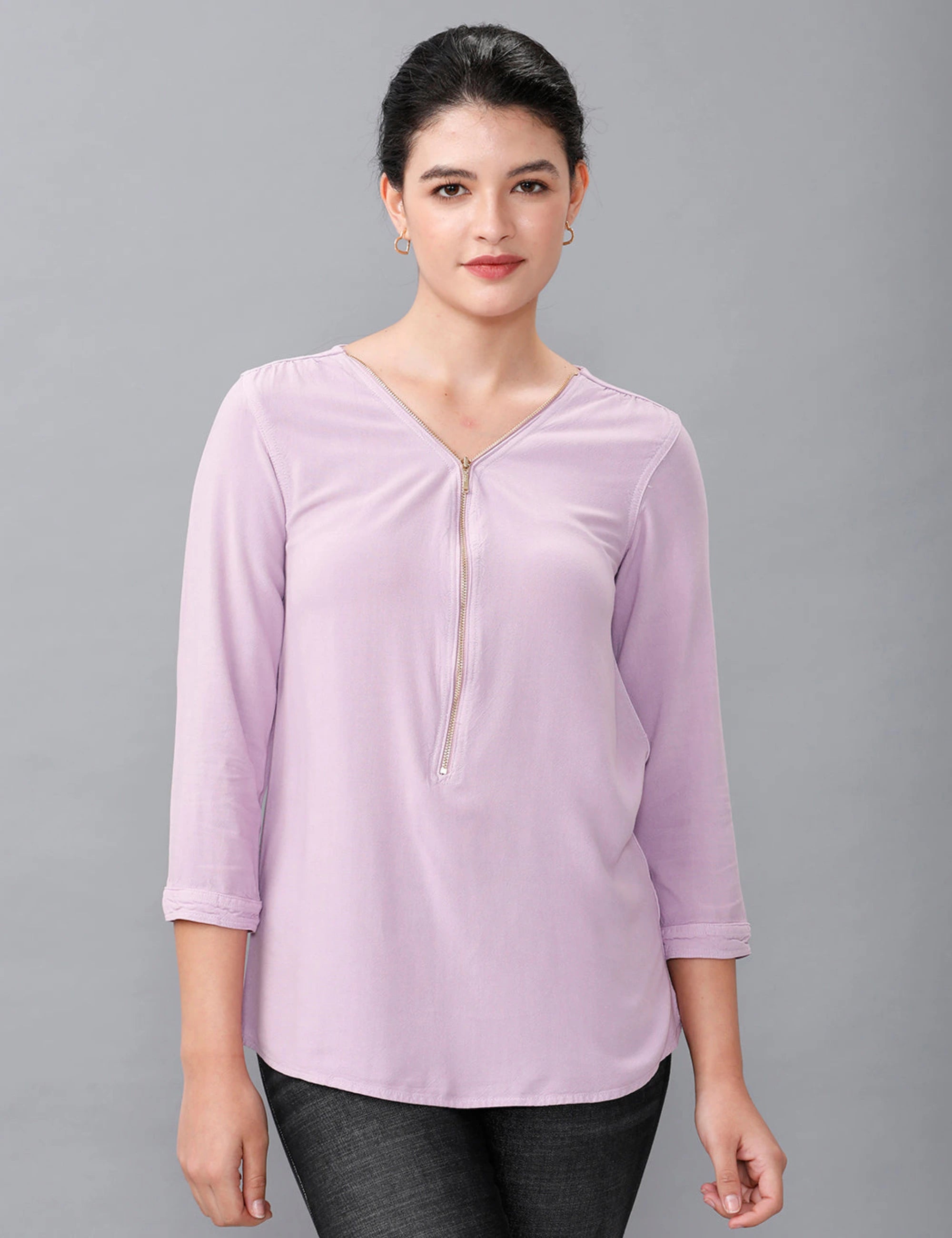 IDENTITI Men Slim Fit Mandarin Collar Solid Shirt In Grey