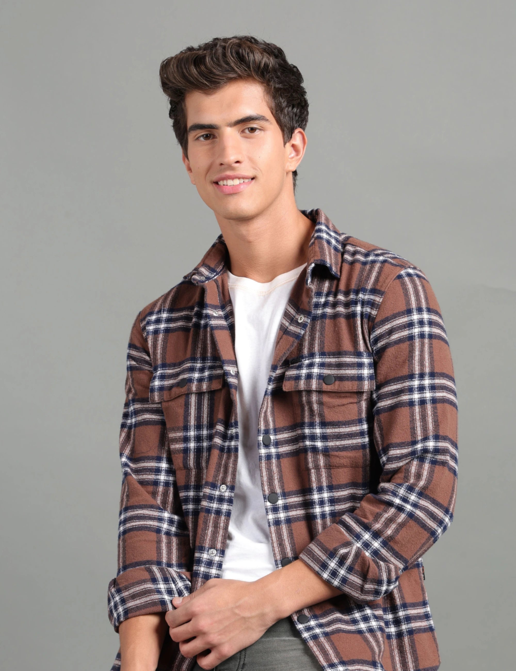 IDENTITI Men Slim Fit Regular Collar Solid Suede Jacket In Brown