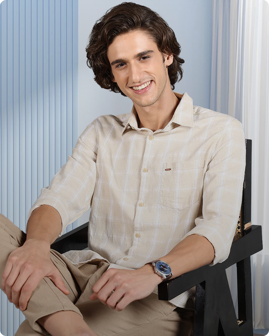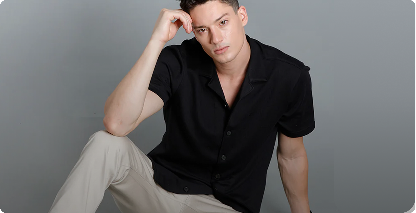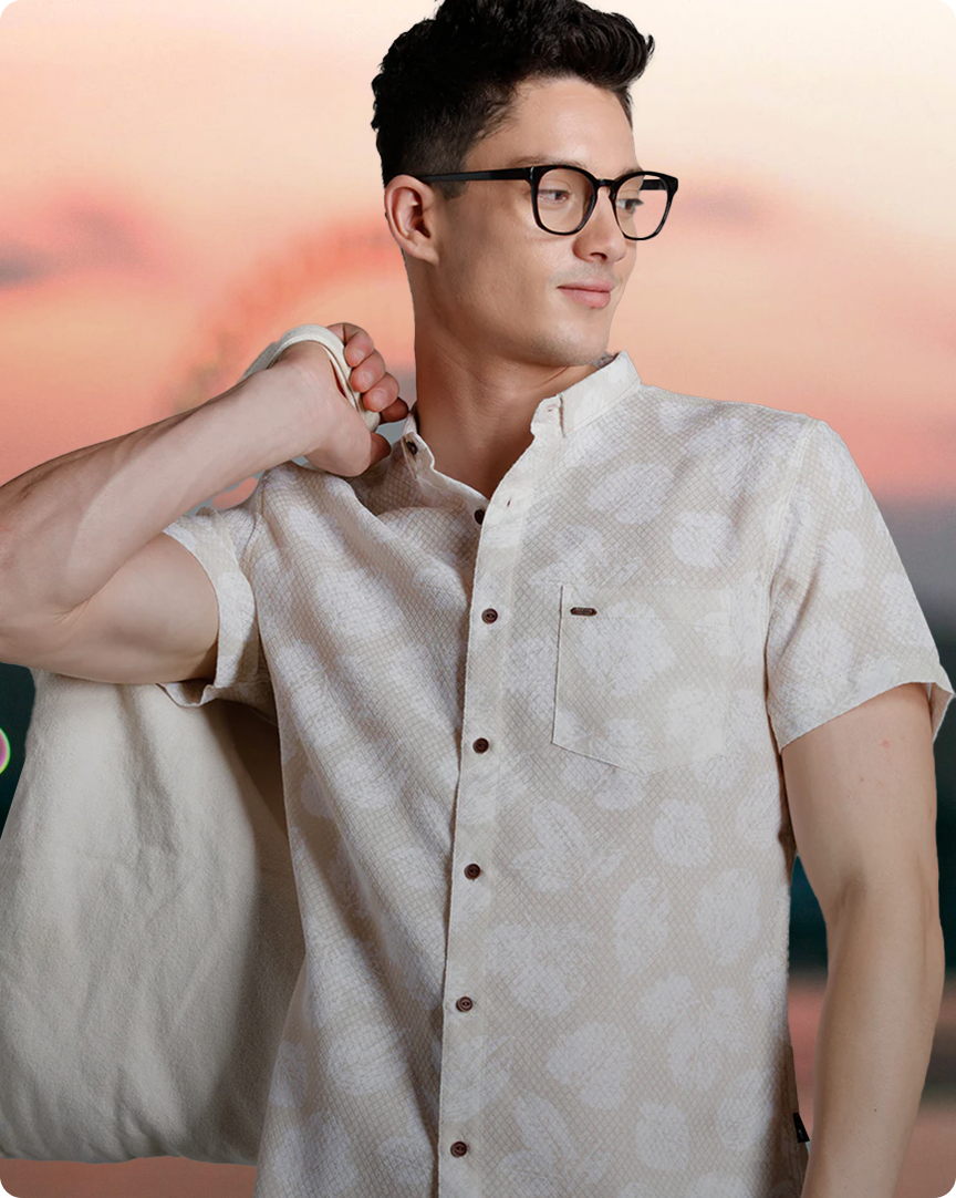 IDENTITI Men Slim Fit Cuban Collar Solid Shirt In Brown.