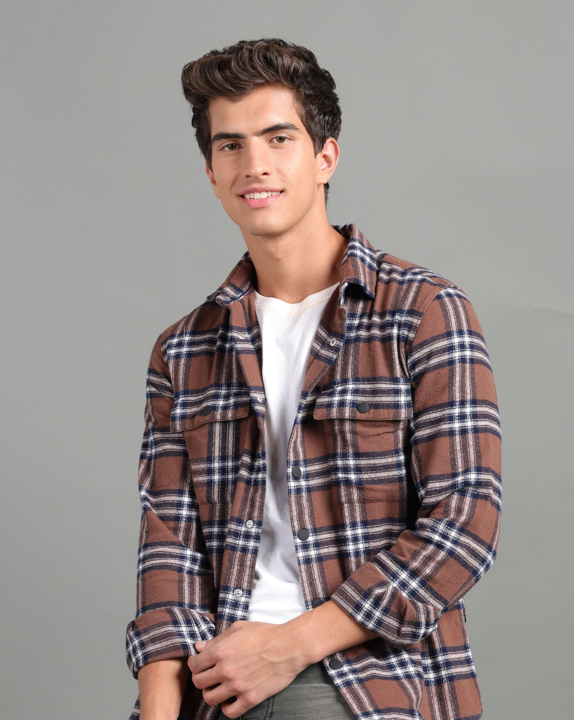 IDENTITI Men Slim Fit Cuban Collar Solid Shirt In Brown.