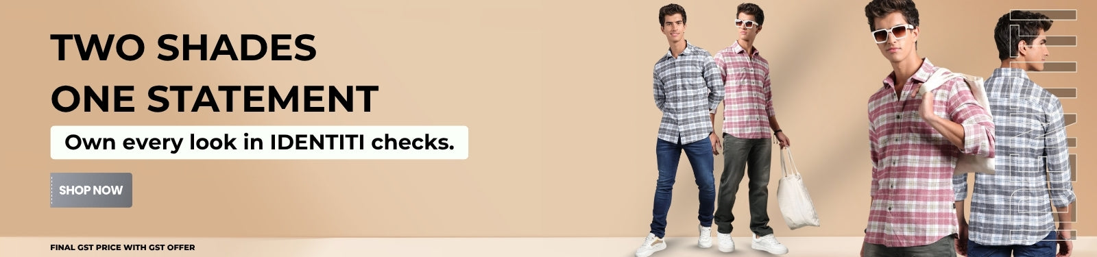 IDENTITI Men Slim Fit Regular Collar Checks Shirt In Beige.